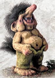 I really feel sorry for the mythical trolls! First they had to be commercialized as plastic creatures with pink and purple hair and if I recall correctly some of them had a berry- carcinogenic odor, too and then as bold body-less 2D sketches with prominent problems to close their mouths!
